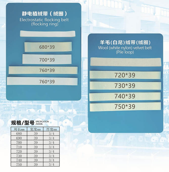 粗紗機/并條機清潔絨帶(絨圈)